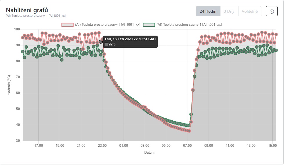 Uživatel má možnost prohlížet a nastavovat vybrané datové body v řídicím